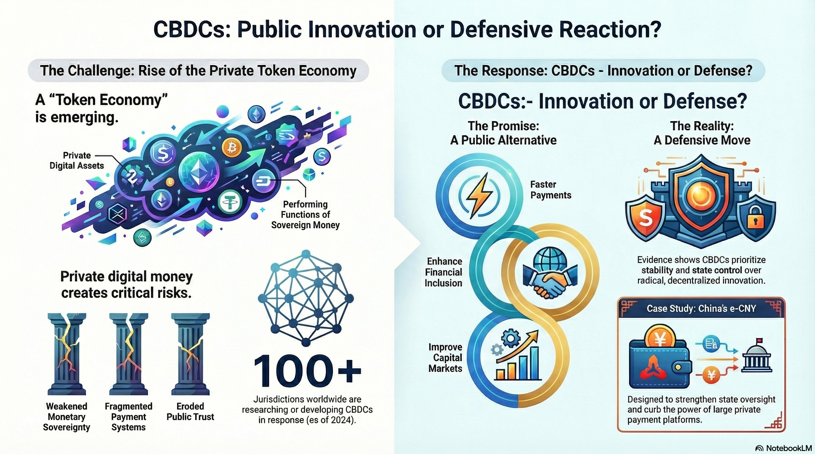 This duality highlights the core tension underlying CBDC initiatives. While CBDCs borrow selectively from the token economy, central banks have deliberately avoided fully decentralized or permissionless designs. Instead, CBDCs represent a cautious modernization of public money, prioritizing stability and control over radical innovation.